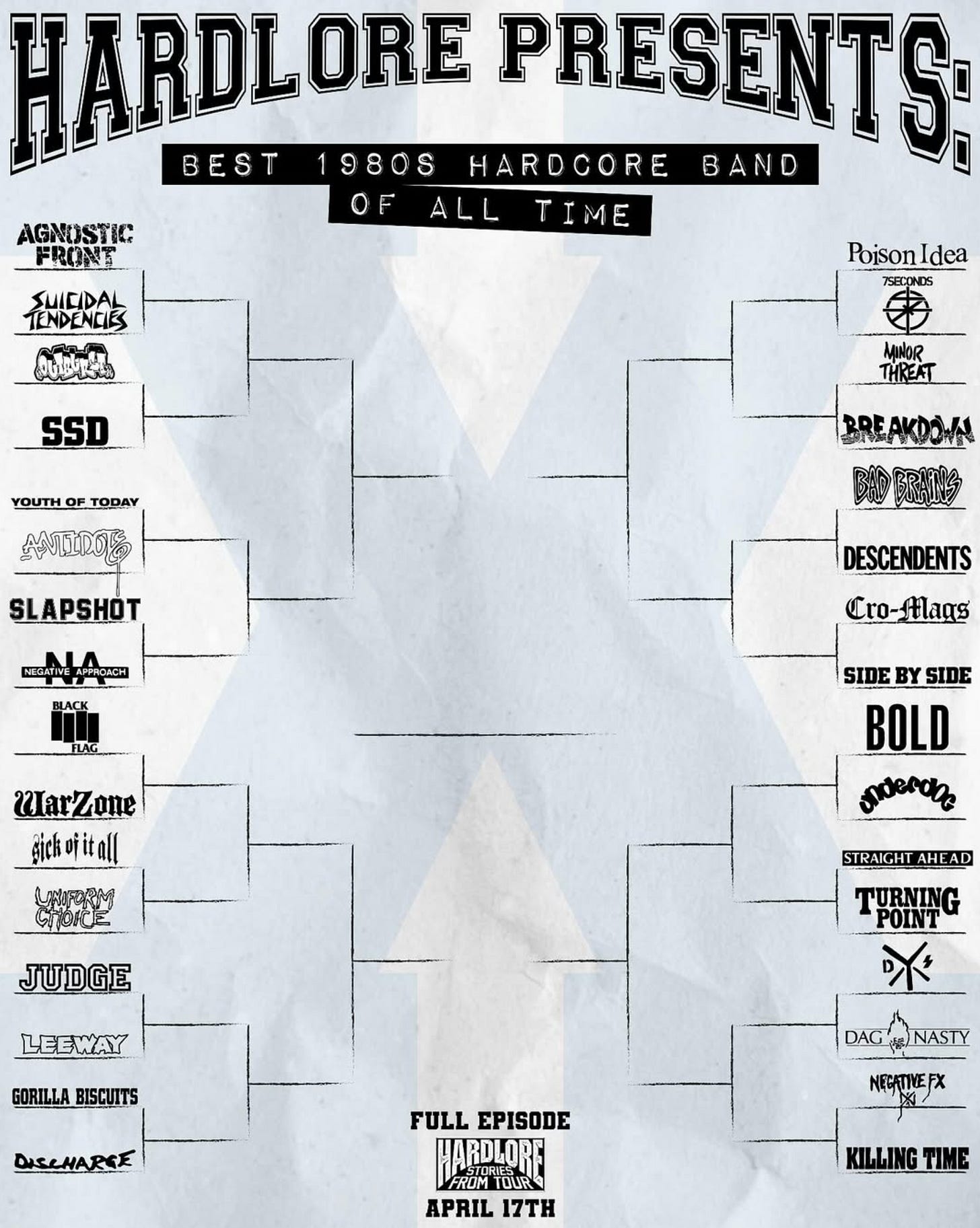 Podcasting juggernaut Hardlore did an episode last week on 1980s hardcore that got the internet and their comments section riled up. There were tons of “what abouts” of course, but hey…everyone can make their own tourney if they want. You own a pencil, right? I’m not getting into what should’ve or shouldn’t have been included. Anything that prompts disc…