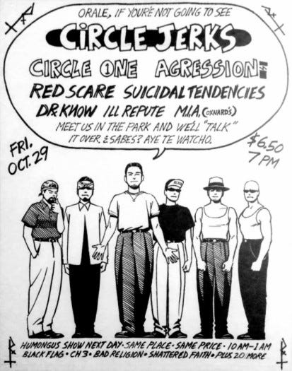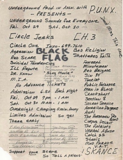 The fest has been around since the early hardcore days. Probably not fests in the amount of bands, but huge tentpole events at the Santa Monica Civic or The Olympic Auditorium rivaled the size of some current hardcore fests. Do the Rock Against Reagans qualify?