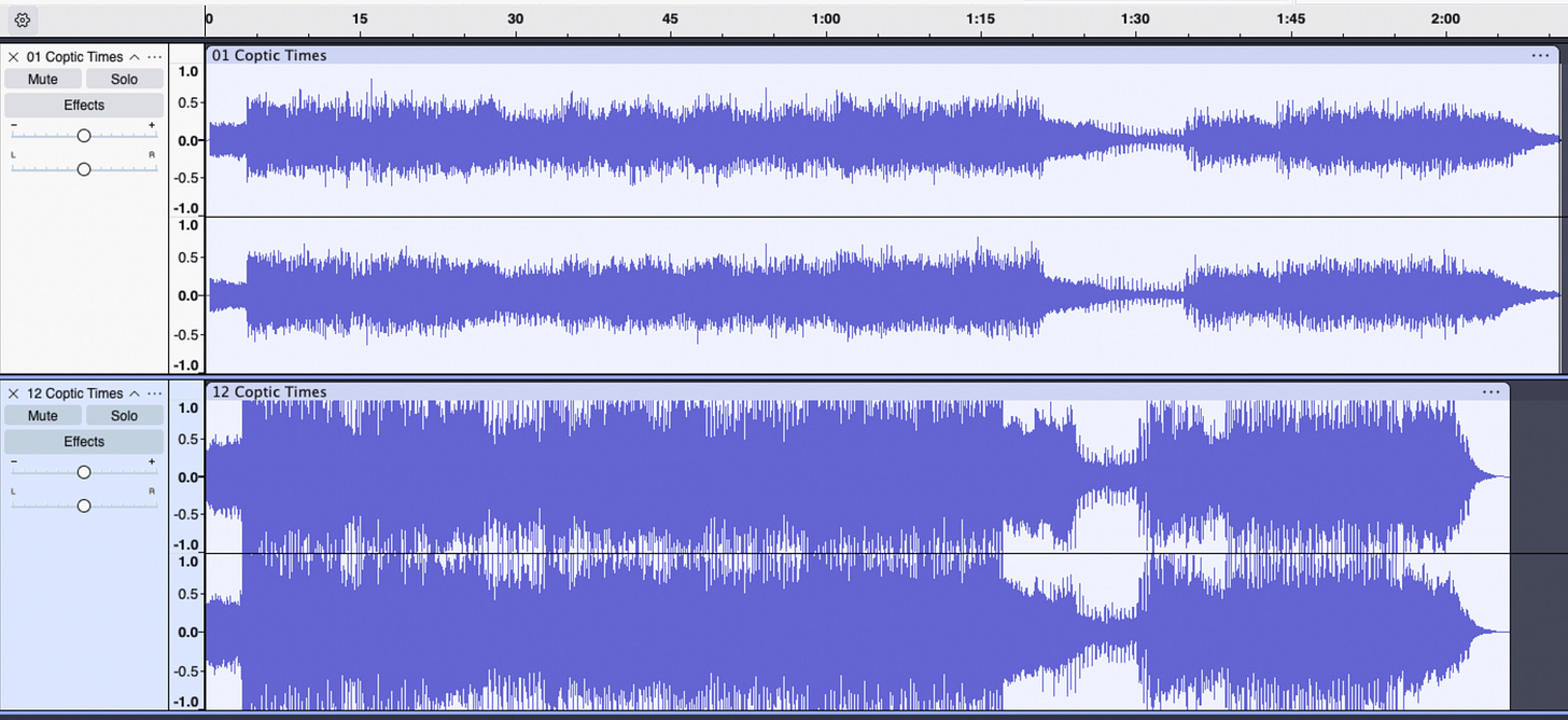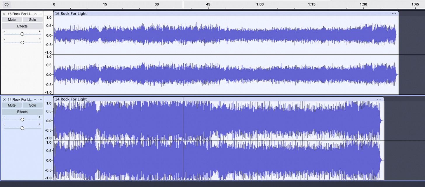 Compare those to a song off Bad Brains Rock For Light, an album that we know for a fact was sped up on the 1991 reissue. The original 1983 version is on top and the ‘91 reissue is on the bottom: